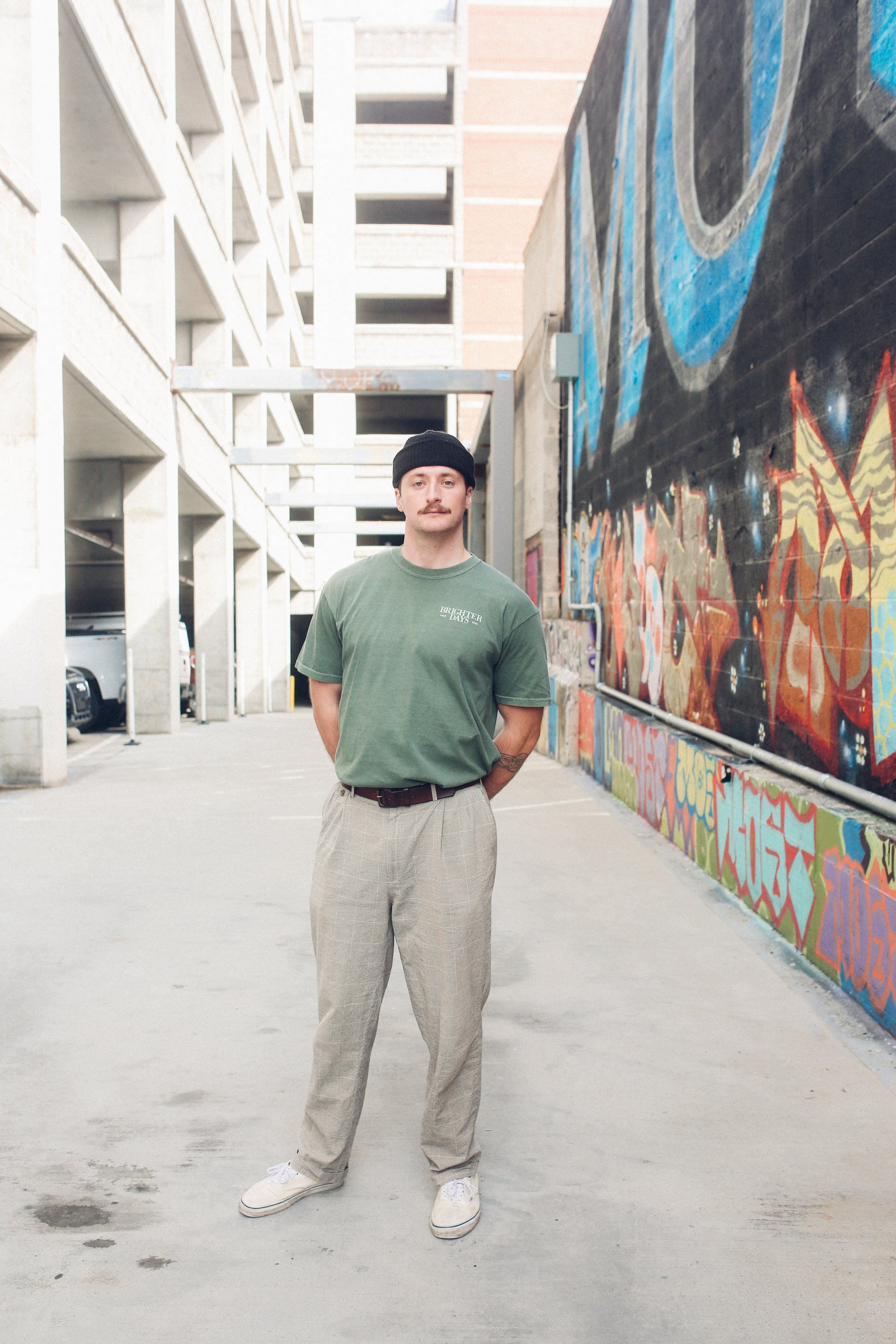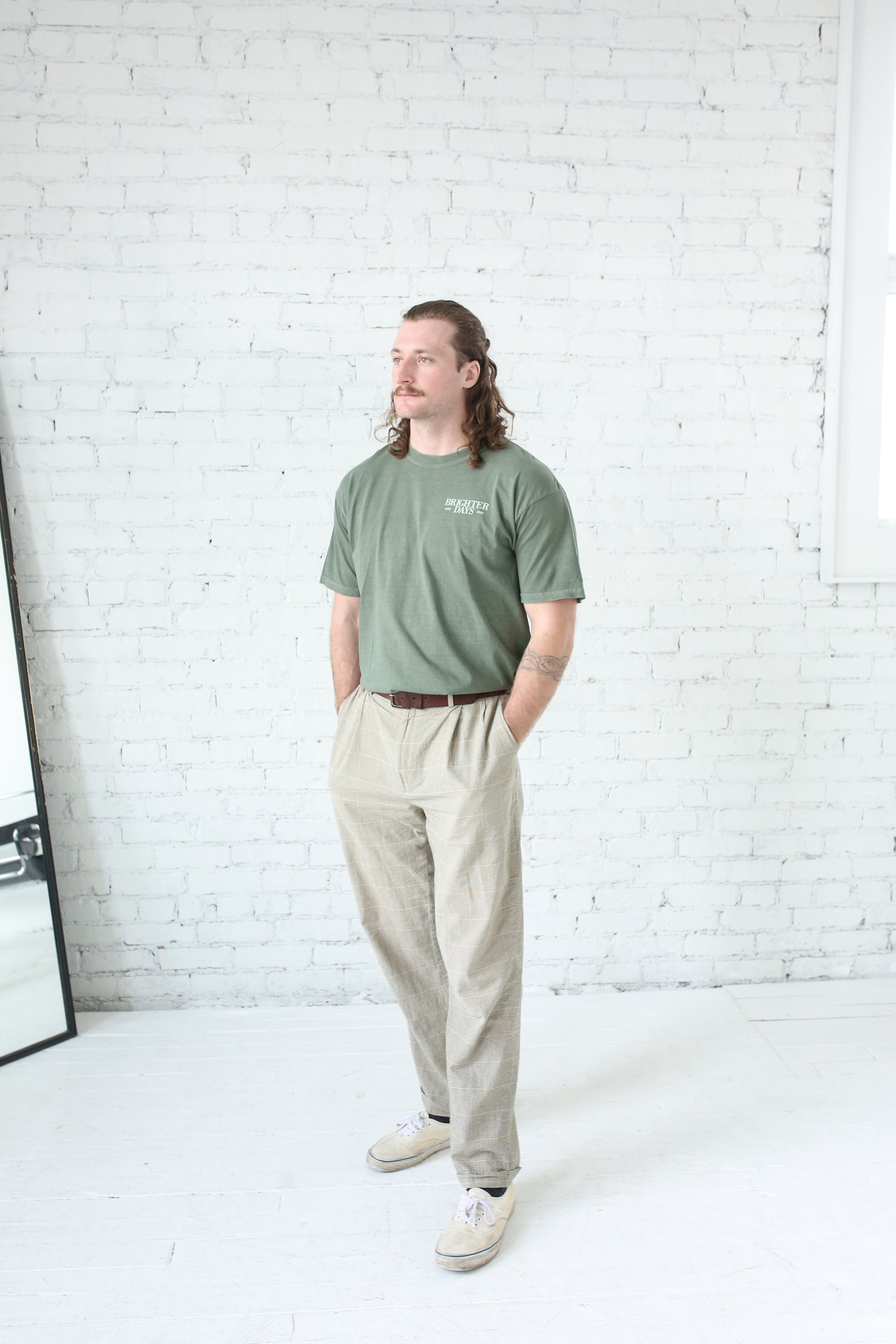 Male model wearing the moss green and violet purple color is 220lbs, 6'3" wearing a XL