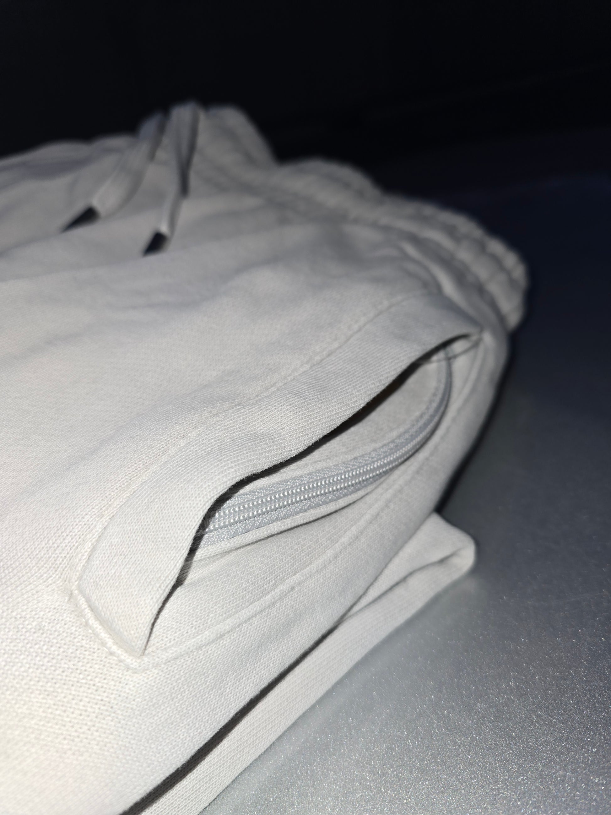 Heavyweight fleece. Side pockets with extra internal YKK Zipper for security. Elastic waistband and bottom cuff. Drawcords have metal tipping.