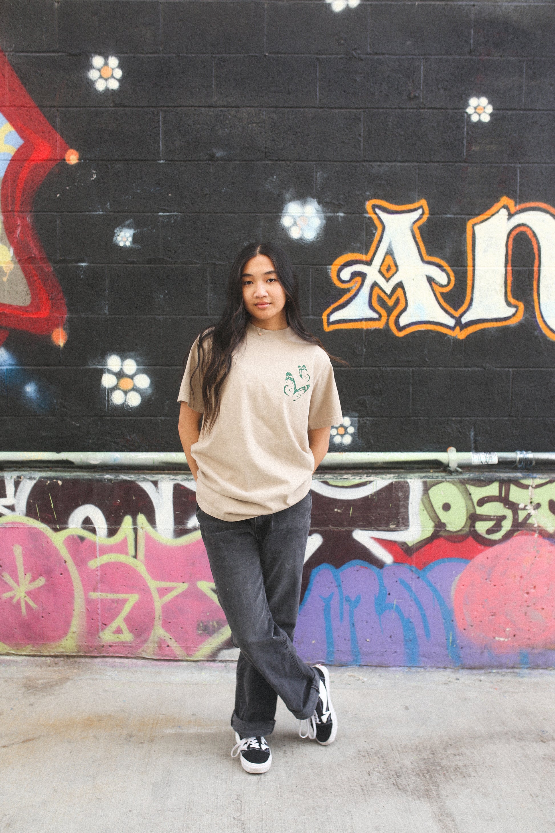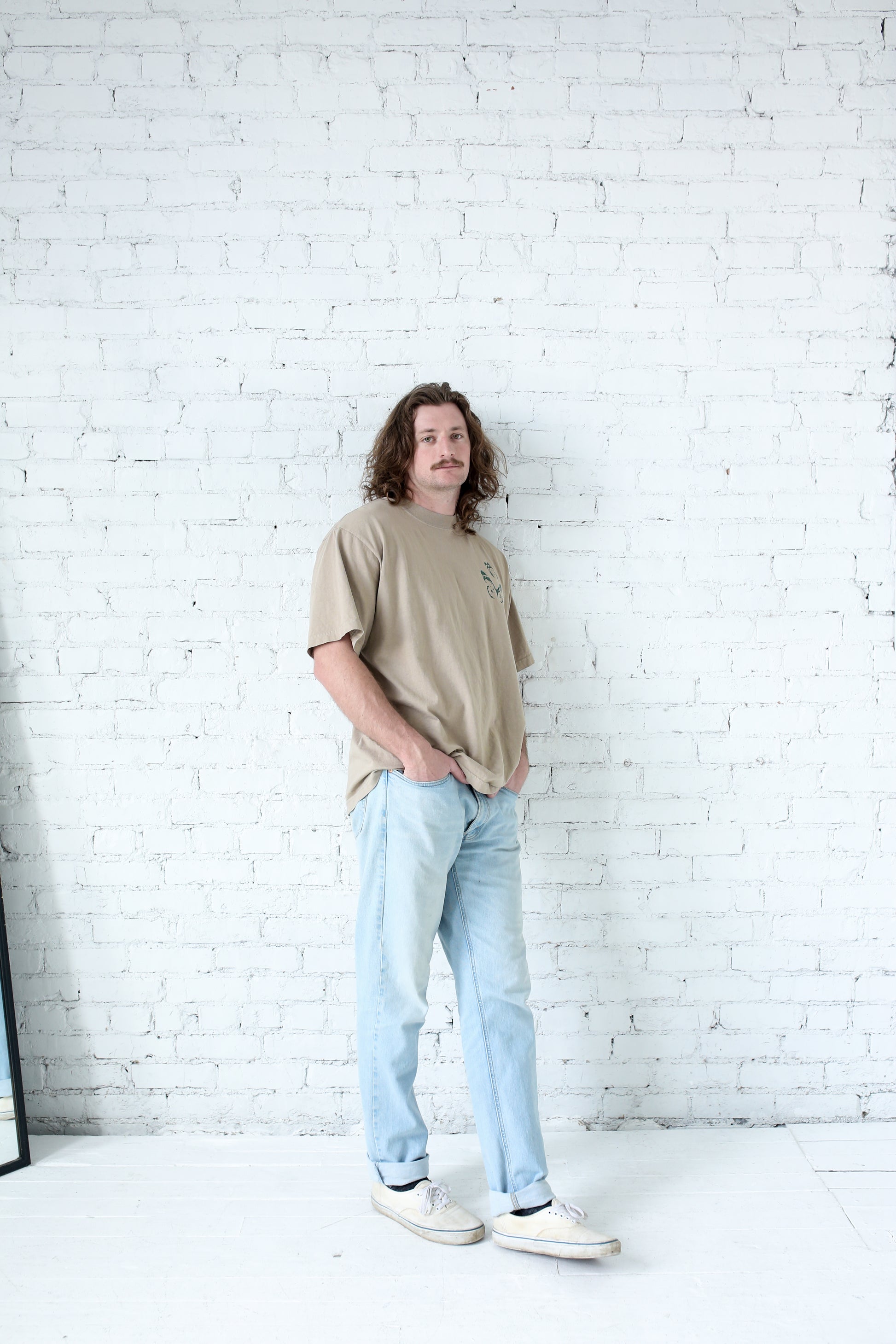 Male model wearing the oatmeal color is 220lbs, 6'3" wearing a XL